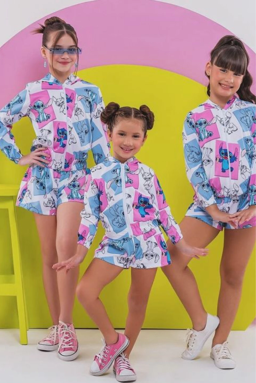 4 anos (Blusa 40cm altura, 33 cm busto); Short (22 cm altura, 34 cm elastico esticado frente)