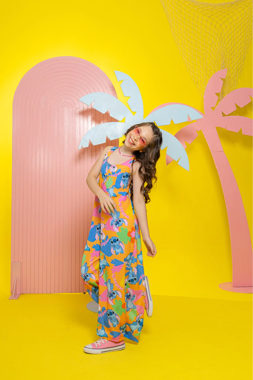 Detalhes: O Macaquinho Carol - Stitch é a escolha perfeita para quem ama conforto e estilo em um só look! Com um design fluído e super moderno, essa peça traz uma estampa vibrante do Stitch em um fundo colorido que transmite alegria e leveza. Alças com amarração ajustável para melhor caimento, costas abertas com detalhe de laço, garantindo charme extra.