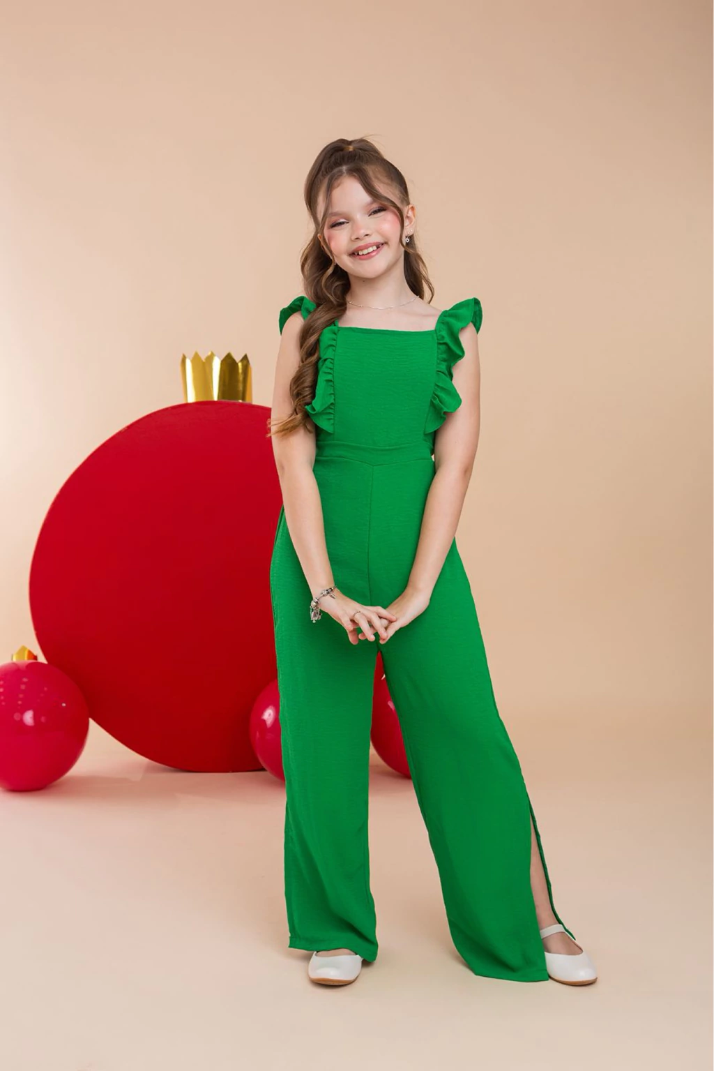 Detalhes: Cheio de charme e conforto, o Macaquinho Mel Verde é a escolha perfeita para as meninas que amam estilo com um toque moderno e delicado. Com um design encantador, ele possui babadinhos nas alças que trazem leveza e movimento, além do decote quadrado super elegante.