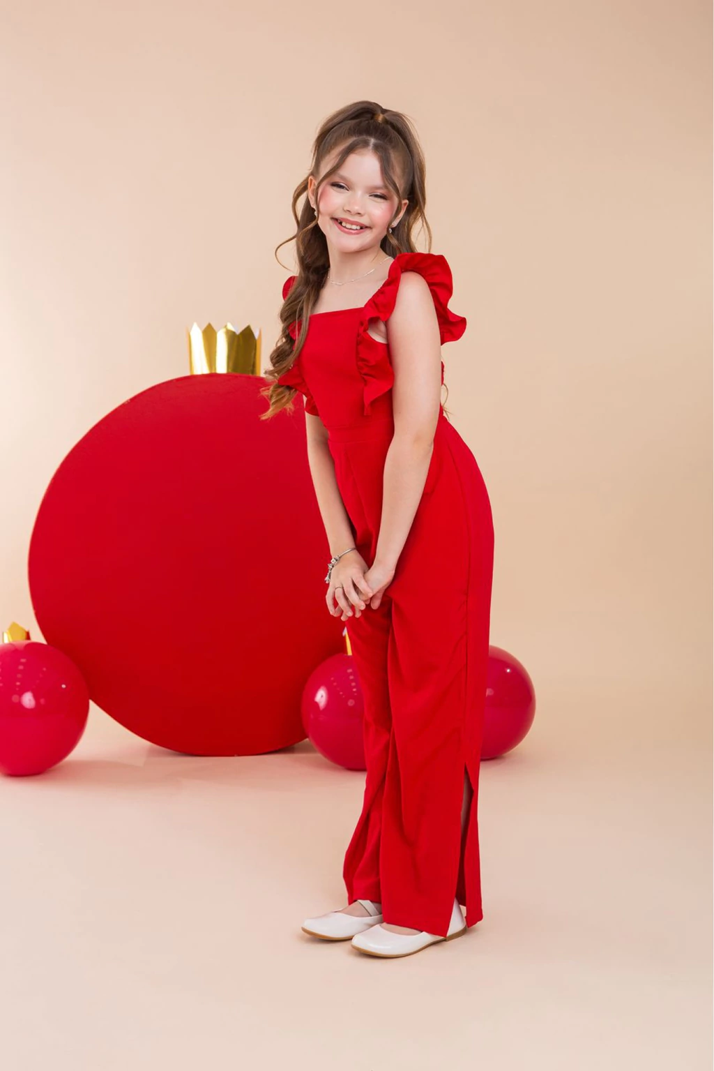 Detalhes: Cheio de charme e conforto, o Macaquinho Mel Vermelho é a escolha perfeita para as meninas que amam estilo com um toque moderno e delicado. Com um design encantador, ele possui babadinhos nas alças que trazem leveza e movimento, além do decote quadrado super elegante.