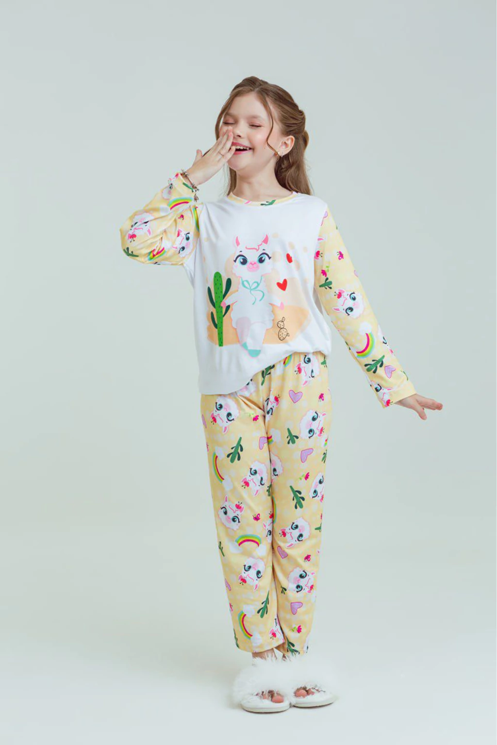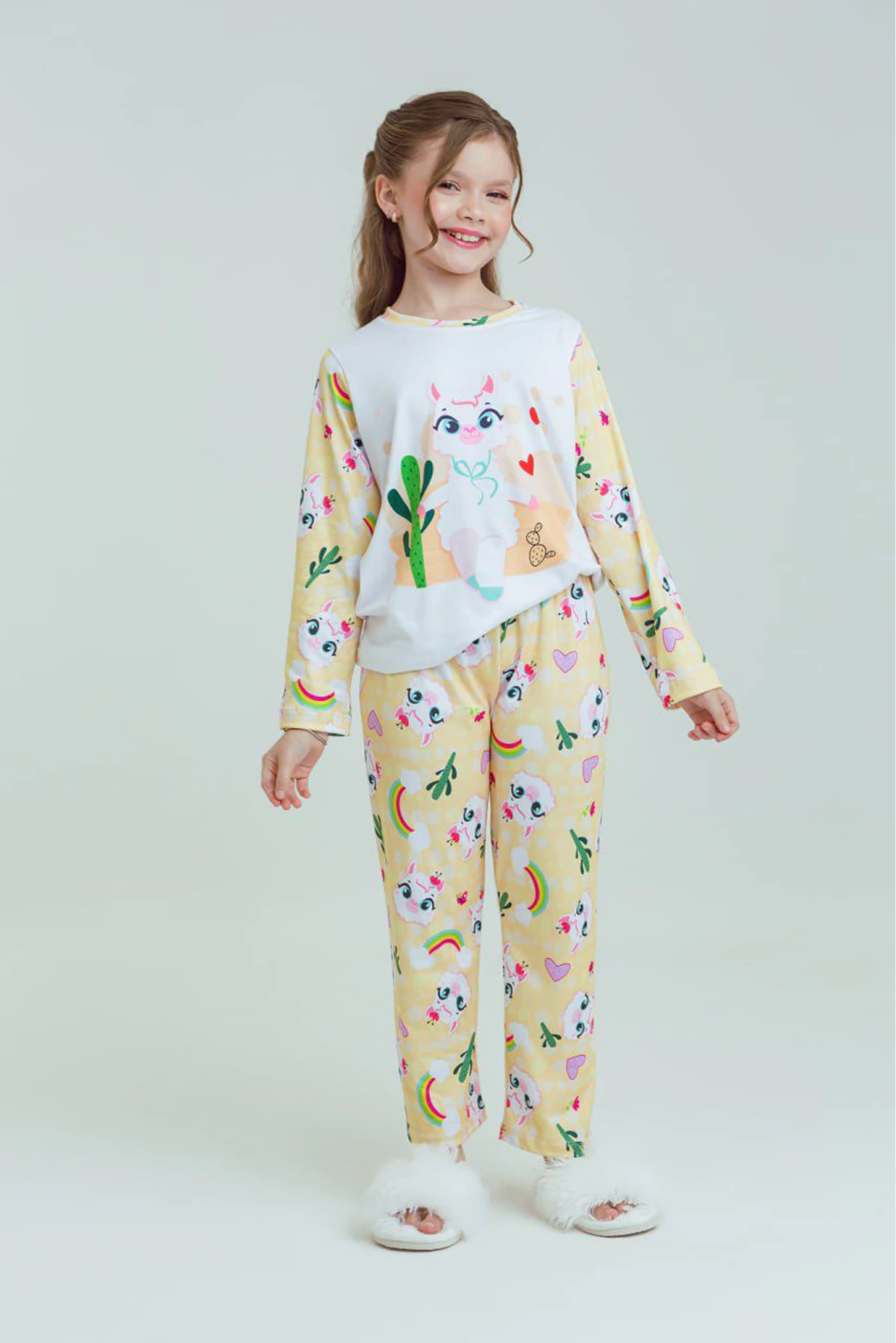 Descrição: Prepare-se para noites ainda mais aconchegantes com o Pijama Lhama, feito em suede premium, um tecido extremamente macio, quentinho e com toque aveludado que garante máximo conforto para as pequenas.