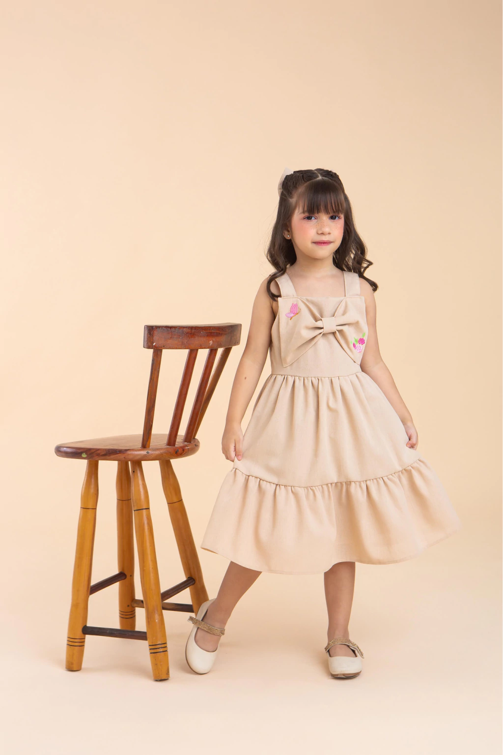 Descrição: Delicadeza e estilo em um só look! Esse vestido é confeccionado em linho premium, tecido leve e sofisticado que garante conforto e caimento perfeito para as pequenas.