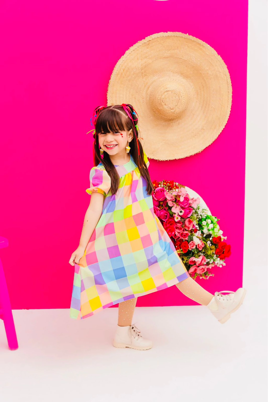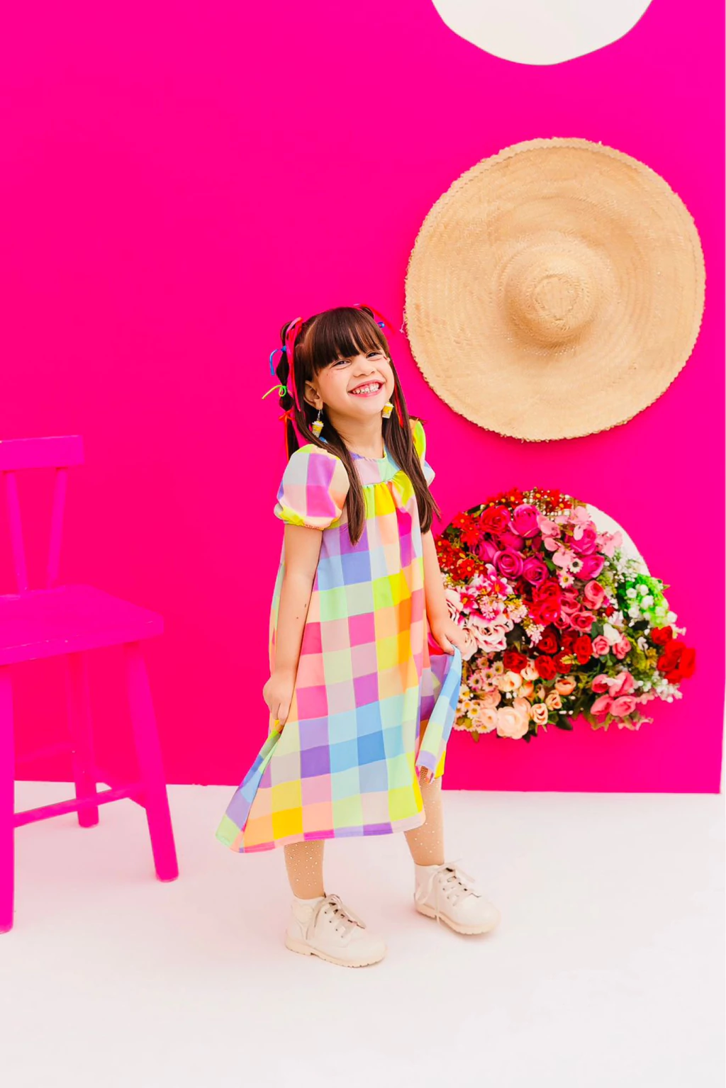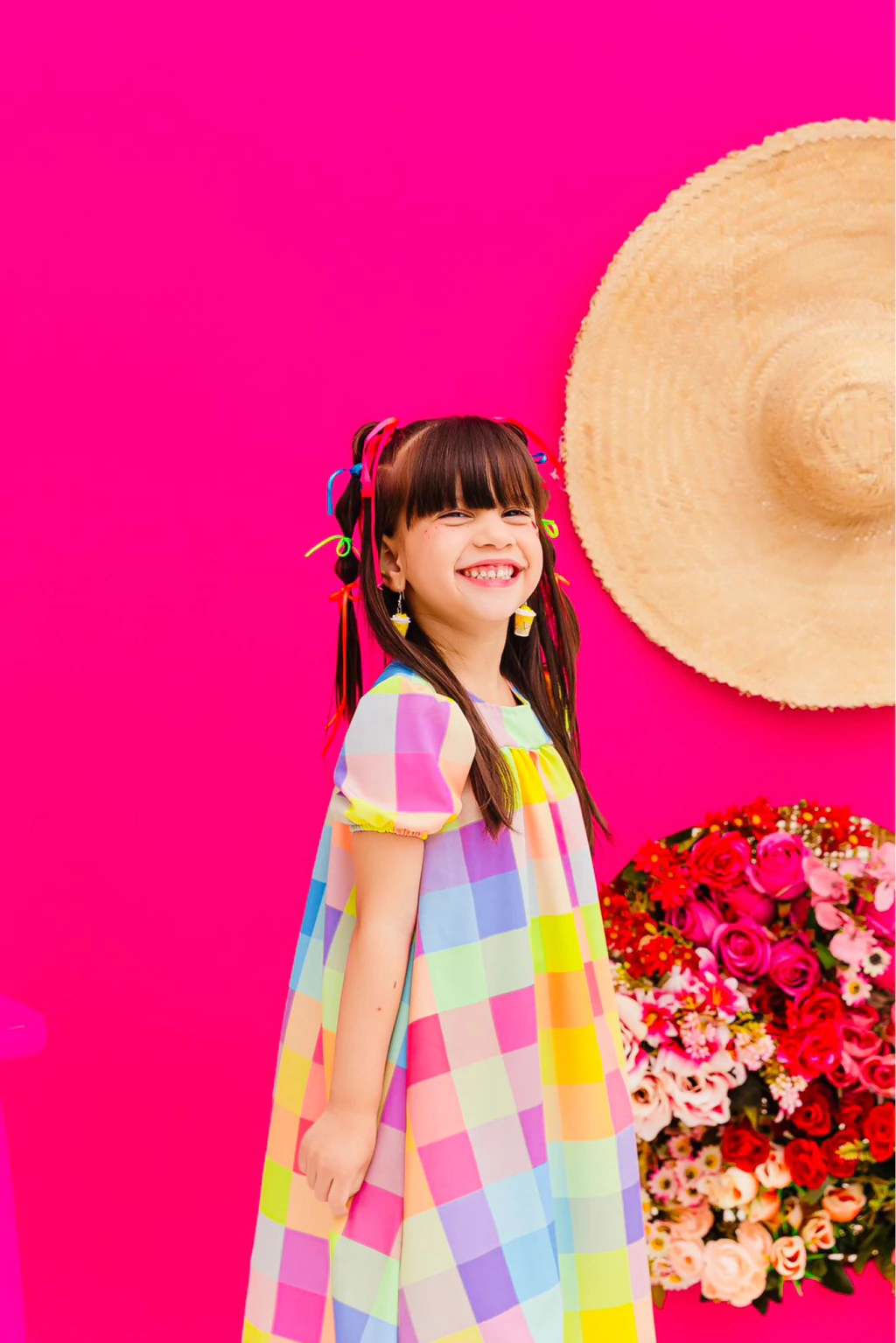 Detalhes: Encante-se com o nosso, perfeito para deixar qualquer ocasião mais alegre e divertida! Com estampa xadrez em tons vibrantes e multicoloridos, o vestido traz um visual leve e descontraído, ideal para festas juninas, aniversários e passeios. Confeccionado em tecido leve e confortável, possui modelagem soltinha que proporciona liberdade de movimentos para as pequenas brincarem à vontade. O detalhe das manguinhas bufantes e o fechamento por botão nas costas completam o charme dessa peça encantadora.